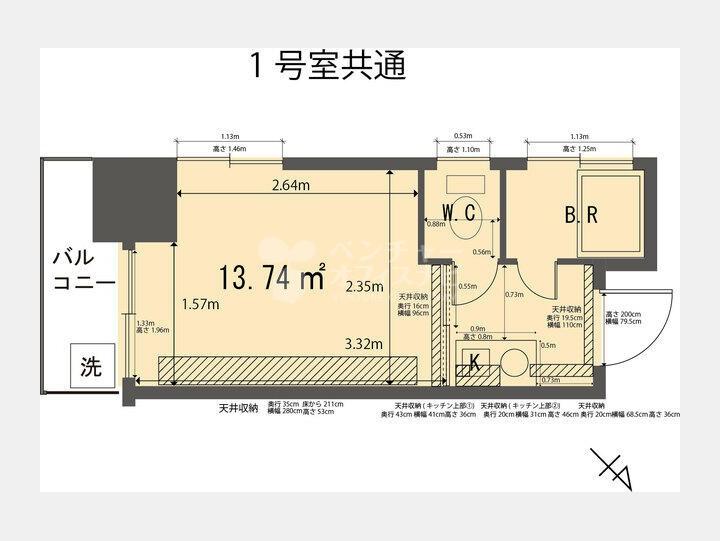| 平米数(坪数) | 13.74m² (4.16坪) | 契約形態/契約期間 | 普通借家/*** |